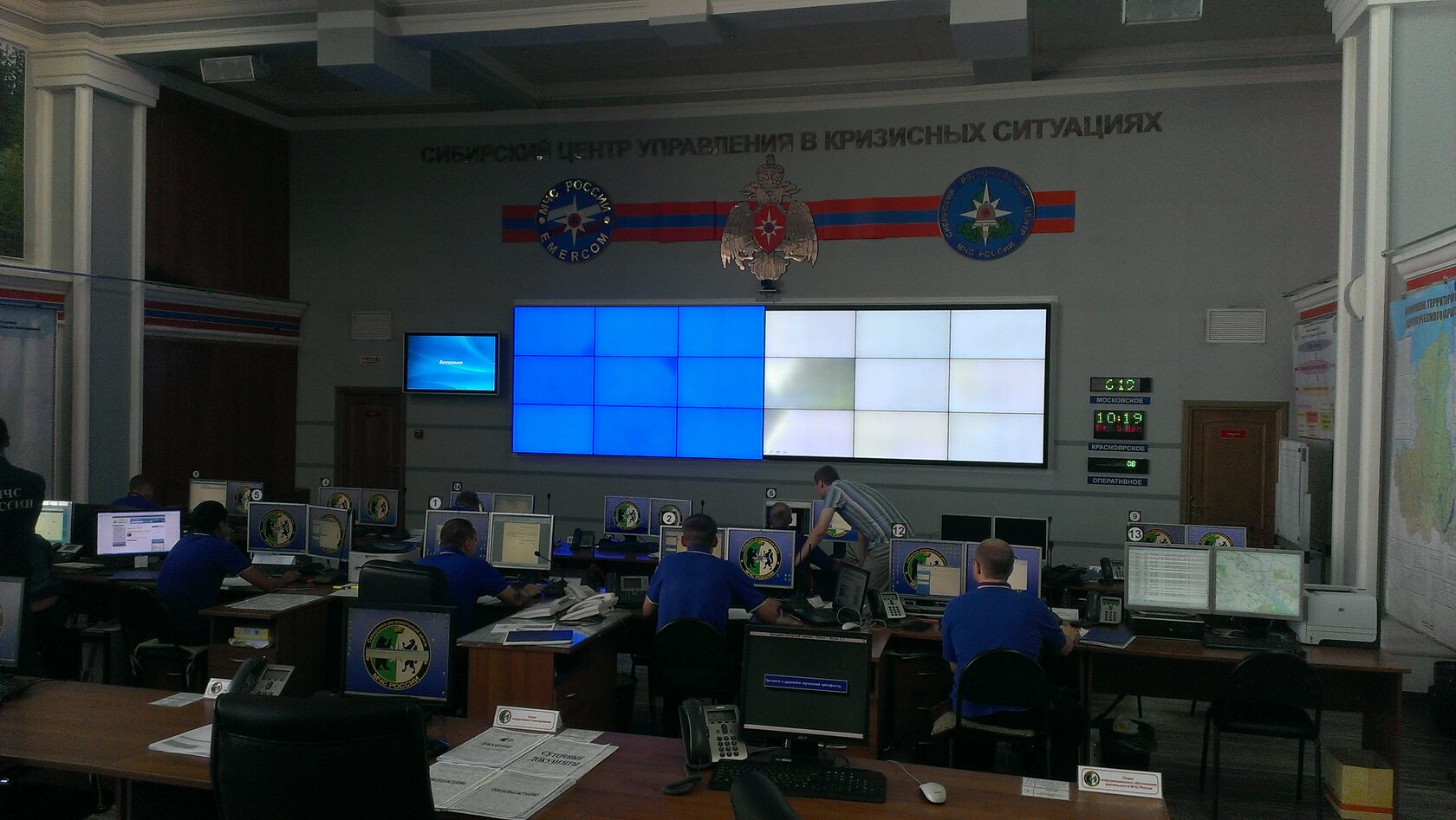Уникальный проект внедрения системы коллективного отображения в диспетчерском зале центра управления в кризисных ситуациях СРЦ МЧС России в г. Красноярск. Комплекс работ включал проведение проектных, строительно-монтажных и пусконаладочных работ по всей инфраструктуре (система коллективного отображения информации, единая система управления, система видеоконференцсвязи, система аудио конференцсвязи, система коммутации, электроснабжение, архитектурно-планировочные решения).